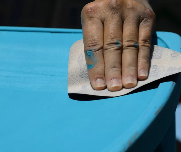 Once dry, you can customize your piece by distressing with sandpaper. Simply sand raised areas, corners, and edges revealing the original wood. Finish your project with a sealing wax (for extra sheen) or leave it raw for that really rustic look!