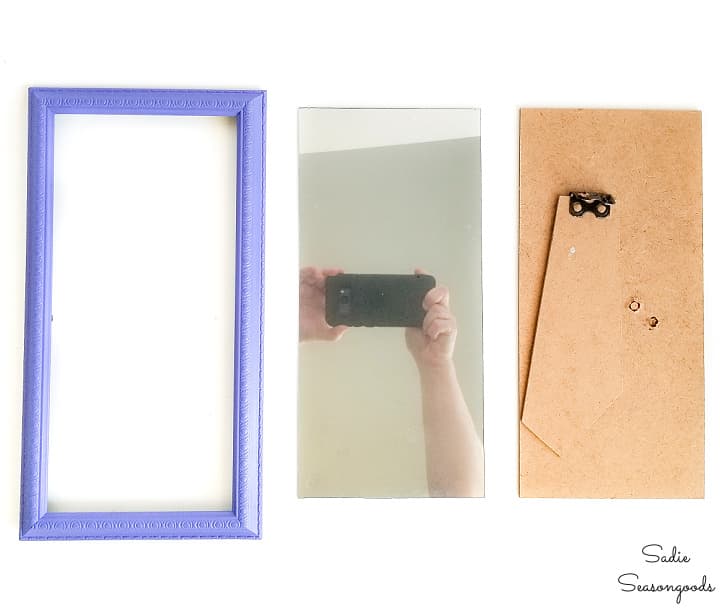 - Once all the paint had dried, reassemble the picture frame parts. Make sure to flip the glass right-side-up so that the reflective side shows through the frame!