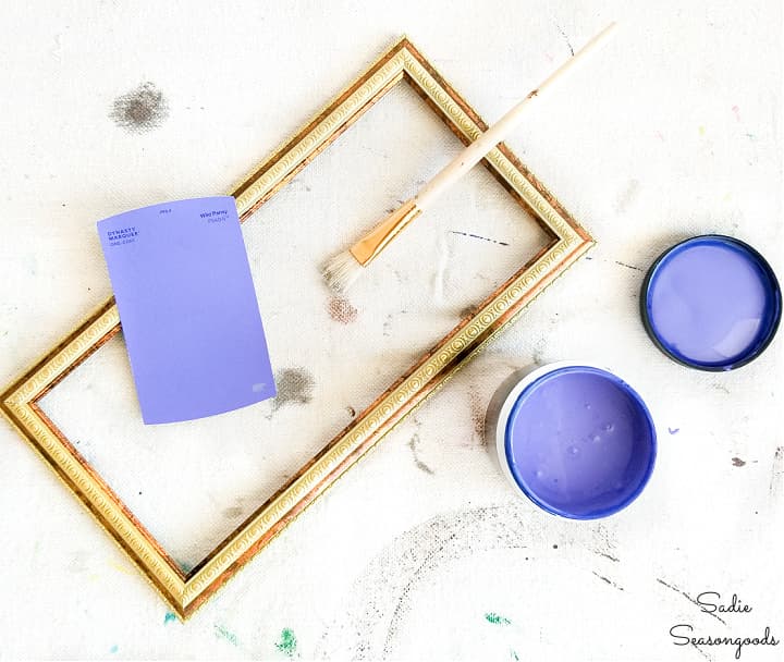 Every year, the company, Pantone, comes out with a “Color of the Year”. And for 2022, that color was “Very Peri”, which is a bright periwinkle blue/violet. So, I decided to harness that bright, gorgeous color into an upcycling makeover. But not just any makeover- a DIY mirrored tray that started as a picture frame from one of our Charlotte Region ReStores! You might be surprised at how easy and straightforward this upcycling project is.