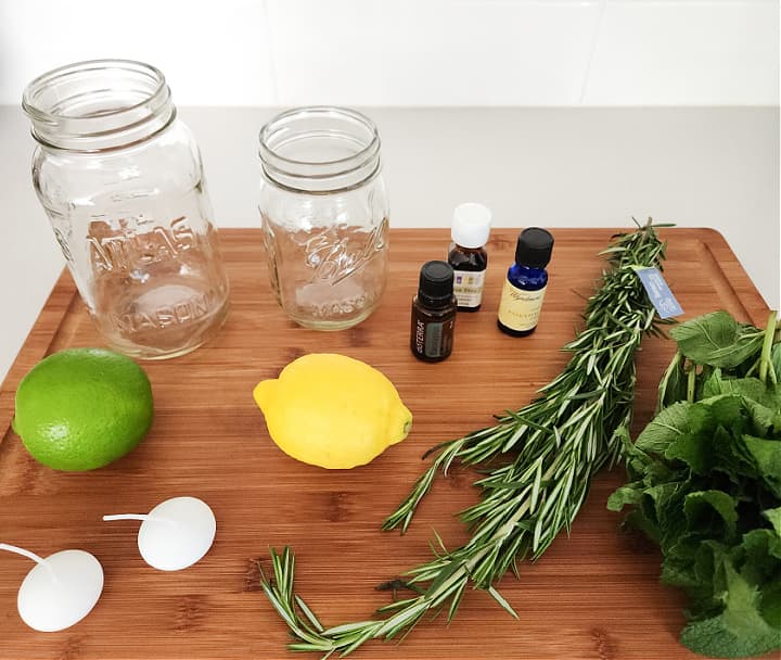 - You’ll also need some fresh produce , such as citrus fruit (lemons, limes) and fresh herbs. Rosemary, basil, mint, and thyme are all excellent for this project- and are readily available at grocery stores and local farmer’s markets.
