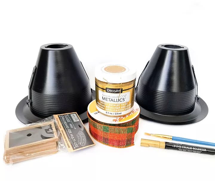 What if I told you I was going to make some pilgrim hat-shaped place cards that started with a piece of recessed lighting? It sounds crazy, until you see how adorable it becomes!
