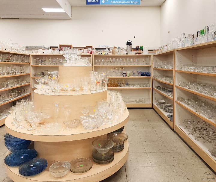 I know what you’re thinking- all thrift stores have a ton of glassware! But the Gaston ReStore really is in a class by itself. So, if you’re looking for drinking glasses for your kitchen, wine glasses for a craft project, or vases, punch bowls, and platters, promise me you’ll head to this location first.