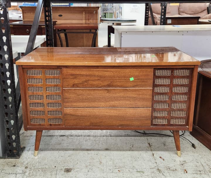 From primitive antiques to Art Deco waterfall pieces…and mid-century modern furniture to Golden Girls-era accents straight from the 1980s, I’ve seen it all at this ReStore. Especially in the center of the store where the end tables, dressers, and china cabinets can be found. But don’t forget to stroll through the back left corner of the store for additional furniture pieces, too.